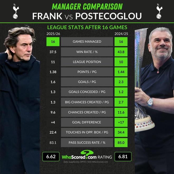 客場(chǎng)0-3不敵諾丁漢森林后,托馬斯-弗蘭克在北倫敦所承受的壓力進(jìn)一步加大,這賽季球隊的比賽風(fēng)格以及糟糕的主場(chǎng)戰績(jì)已經(jīng)讓球迷的不滿(mǎn)情緒不斷升溫,Whoscored也對比了弗蘭克本賽季前16輪和上賽季澳波前16輪的數據。